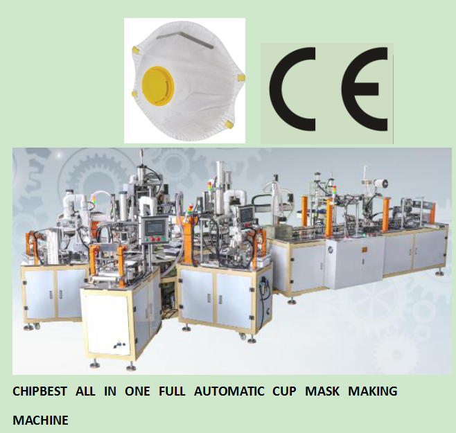 Chipbest automatic cup mask all-in-one machine is from raw material entering to peripheral welding, punching, punching,Nose line, LOGO printing, upper ear strap, full-process automatic operation; this machine has the characteristics of stable performance, high efficiency and labor saving, high-quality and uniform products, and fully meets the N95 testing standards.
