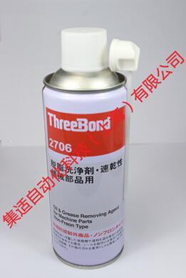 2)ThreeBond 2706對附(fù)著在機械零件上油脂(zhī)類(lèi)或塗有塗料的塗裝麵,塗布有接著劑的情形下的接著麵,粘貼(tiē)有密封(fēng)墊的接著麵(miàn)等(děng)的油脂類及其他的髒東西(xī)可以迅速地(dì),而且簡單地去除,是一種噴氣式的強力脫脂劑。不受(shòu)有機溶中毒預(yù)防規則,屬(shǔ)於不含氟氯碳化物類製品,可安心使用。